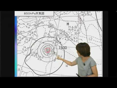 - 地表のくぼみの両側にある緯度7.5 度の地点の高度差は 500 hPa です。電流に対して垂直に測定し、開いた輪郭のみを含めます。