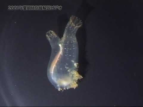 幼虫は小さなカエルのオタマジャクシに似ており、大きな「頭」と、神経管と背索を含む遊泳尾で構成されています。脊索動物の特徴である索と神経管は、動物が基質に付着すると消失します。
