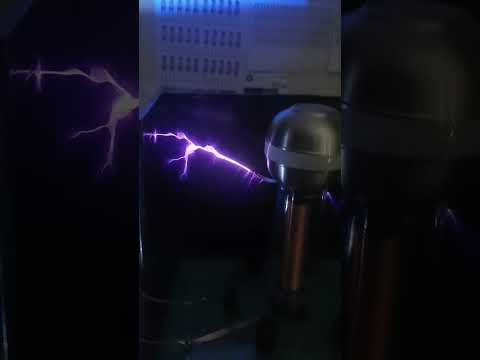 テスラ コイルまたはテスラ変圧器は、高周波交流で動作し、非常に高い電圧に到達できる電気機械です。発明者ニコラ・テスラにちなんで名付けられました。この装置は、共振によって結合および調整された 2 つまたは 3 つの巻線回路で構成されています。従来の変圧器のような金属コアはなく、空芯変圧器です。