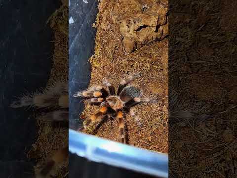 体の後部は黒く、脚と同様にオレンジ色と赤みがかった長い毛があります。ここは、この種のクモの特徴である刺毛が見られる場所でもあります。
