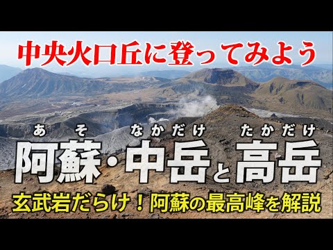 すべての火山丘の中で最大のものは、中岳 (1,506 m、歴史的に最も活動的であった)、高岳 (最も高い、1,592 m)、根子岳 (1,408 m、最古のものと推定されている) です。 )、杵島岳(1,270m)、奈良尾岳(1,331m)、烏帽子岳(1,337m)です。