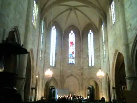 - 14世紀に、3 つの後陣で構成されたロマネスク様式の聖歌隊を、3 つの身廊と中央の後陣を備えた 3 つのベイを持つ印象的なゴシック様式の聖歌隊によって再建されました。この再建はおそらく、聖アデルファスの聖遺物箱へのアクセスを改善したいという願望によるものでした。